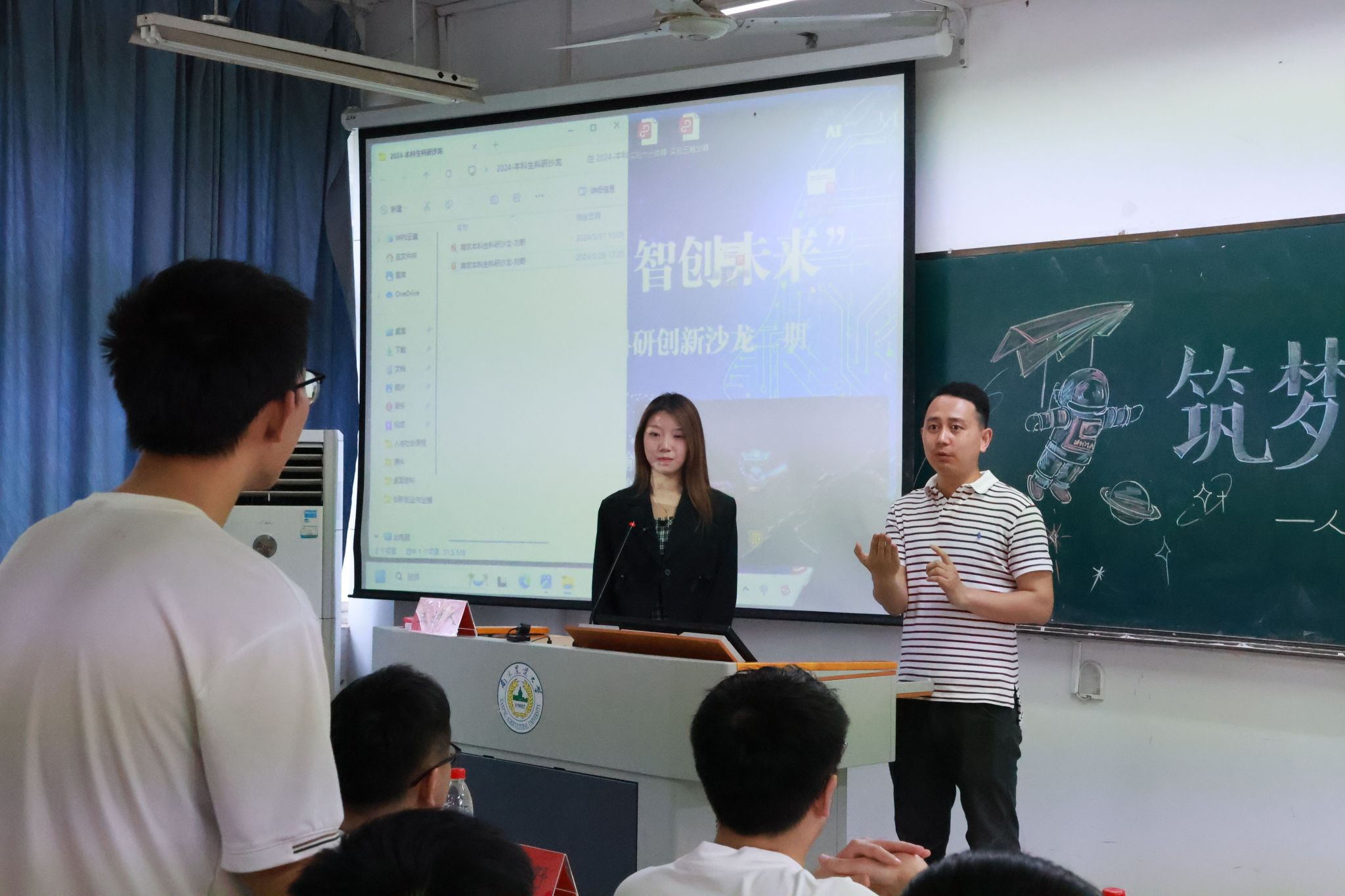 5月31日下午,人工智能学院“筑梦引航,智创未来”本科生科研创新沙龙(二期)在汇贤楼C201成功举办。本次科创沙龙以讲座分享及互动交流的形式开展,由我院青年教师刘野和朱一亨担任主讲嘉宾,本科生辅导员李洪老师参与活动,活动面向我院同学开展。