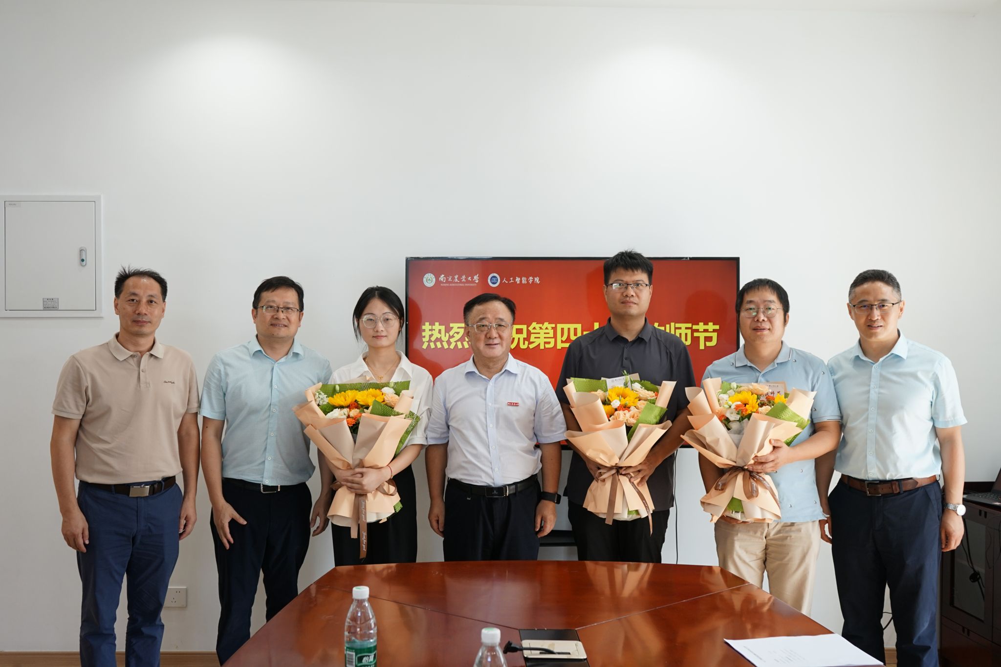 走访慰问期间,单正丰副校长代表学校向学院全体教职工致以节日的问候,并为教师代表一一送上鲜花。