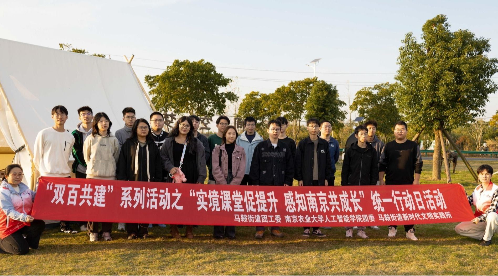 为深入贯彻落实习近平总书记在庆祝中国共产主义青年团成立100周年大会上重要讲话精神,进一步推动校地融合创新发展,引导大学生参与基层社会治理,落实团市委“双百共建”工程相关工作要求,我院联合六合区马鞍街道团工委、新时代文明实践所、文体中心,举办“双百共建”系列活动之“实境课堂促提升 感知南京共成长”统一行动日活动。