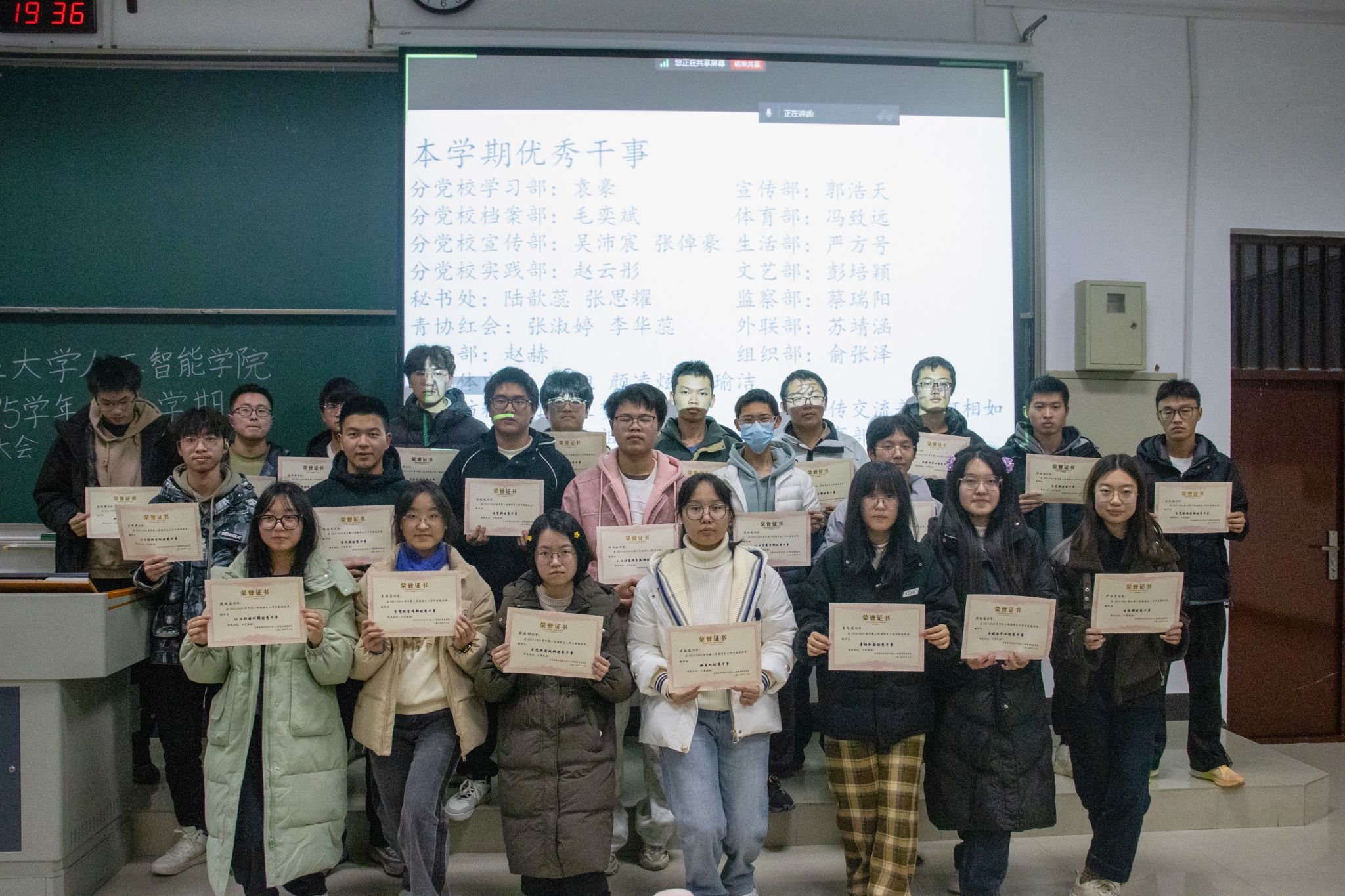 会议第三项:主持人组织本学期优秀部门投票,参会人员公平公正、认真严谨地进行投票。随后主持人宣读优秀部门名单,分别为分党校宣传部、秘书处、组织部、全媒体中心和AI工坊宣传交流部。同时,宣布优秀干事、优秀副部长名单,并由监察部为学生组织成员颁发证书,各位干事饱含热情,会议现场掌声雷动。会议最后,主持人宣布会议结束,秘书处组织参会成员有序退场。