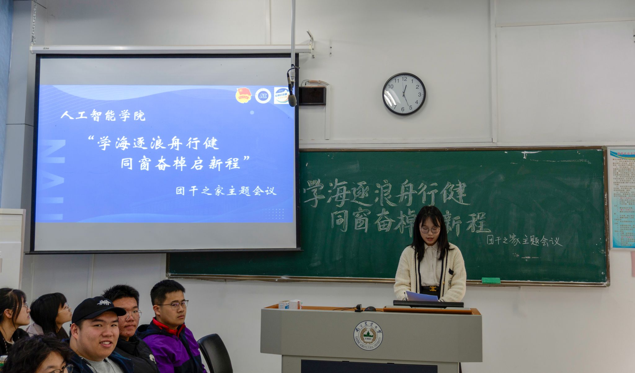 为深化基层组织建设,构建协同育人新格局,3月28日下午,人工智能学院“学海逐浪舟行健,同窗奋棹启新程”团干之家主题会议在汇贤楼A107举行。学院辅导员魏宇宁、团学组织骨干及2023-2024级全体班委共计60余人齐聚一堂,共商学风建设大计。