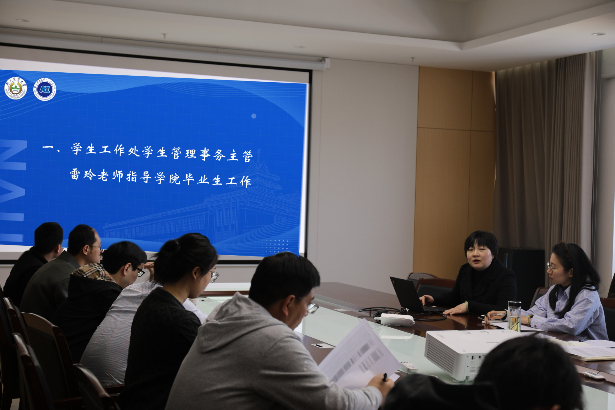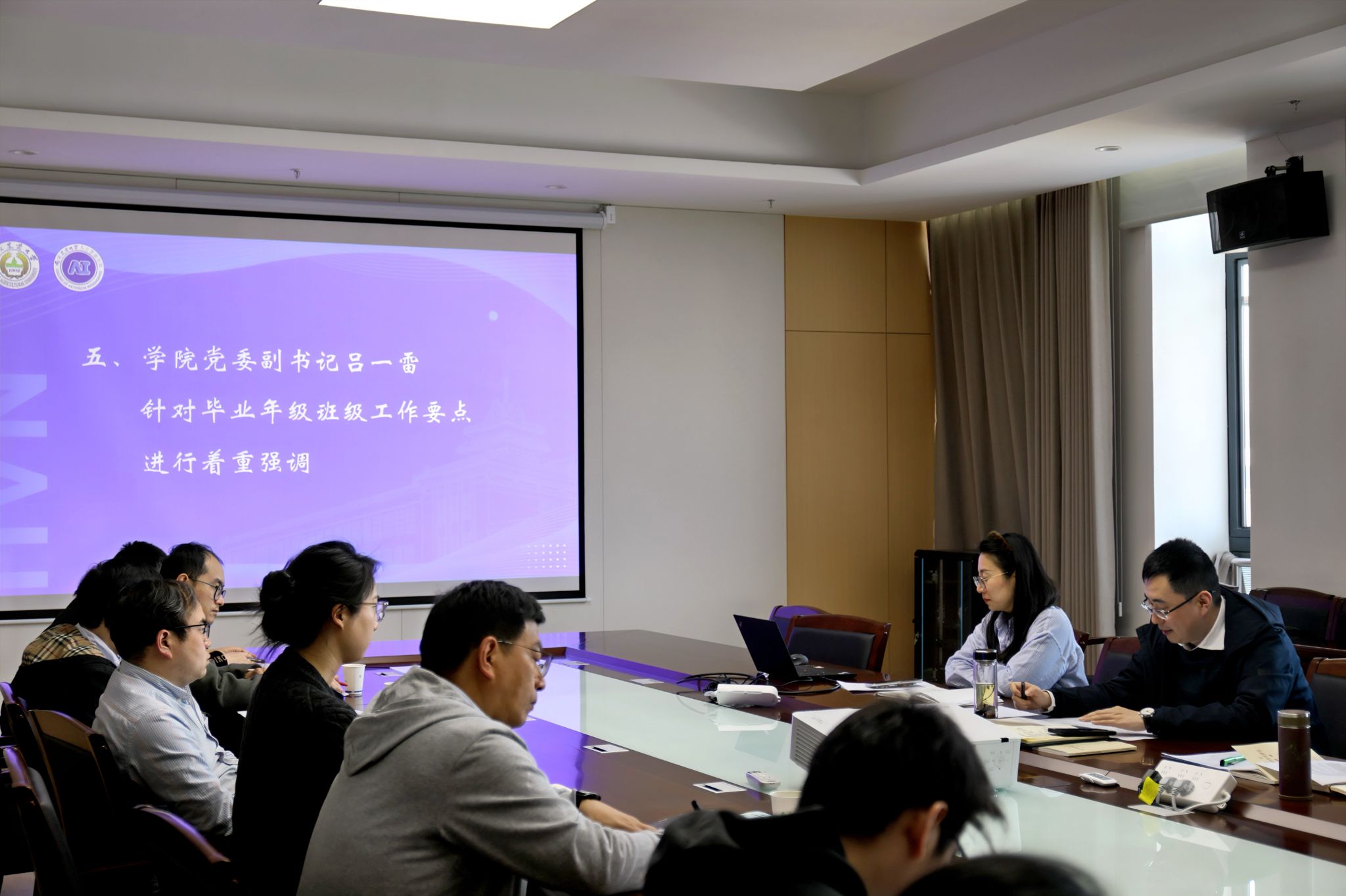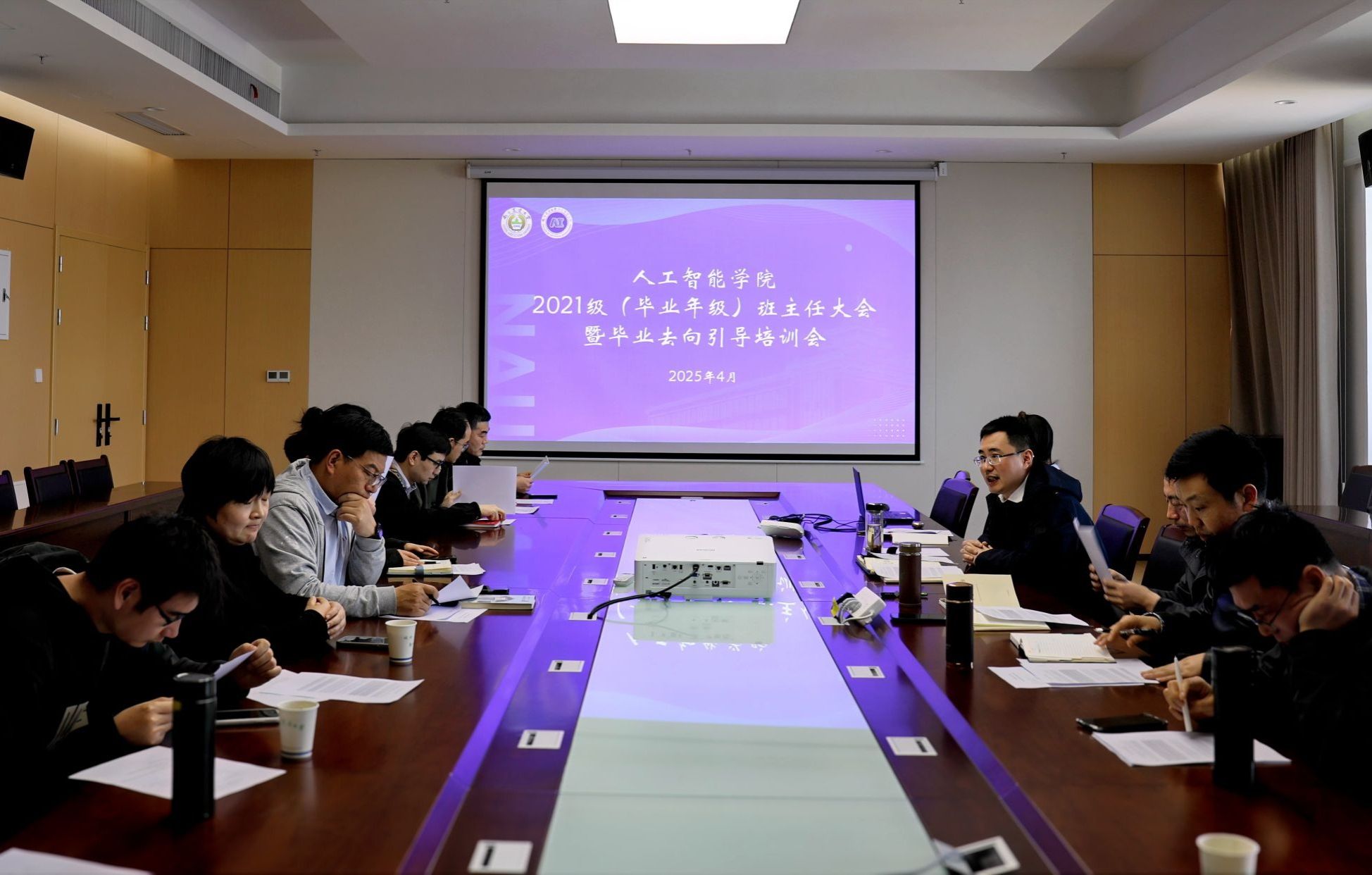 4月3日14时,人工智能学院在滨江校区12号楼A863会议室召开2025届毕业班班主任培训会暨就业工作推进会。学院党委书记田永超、党委副书记吕一雷出席会议,特邀校学生工作处学生管理事务主管雷玲作专题指导,优秀班主任代表徐大华及全体毕业班班主任、辅导员参会。会议由吕一雷主持。