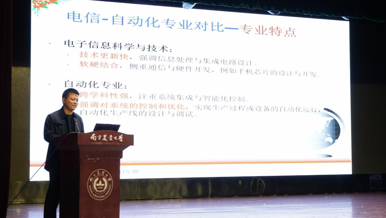 邹修国从专业课程、研究内容、培养目标等方面对电子信息科学与技术专业进行了介绍,详细地对比出自动化与电子信息科学与技术在学习内容和重点上的异同。