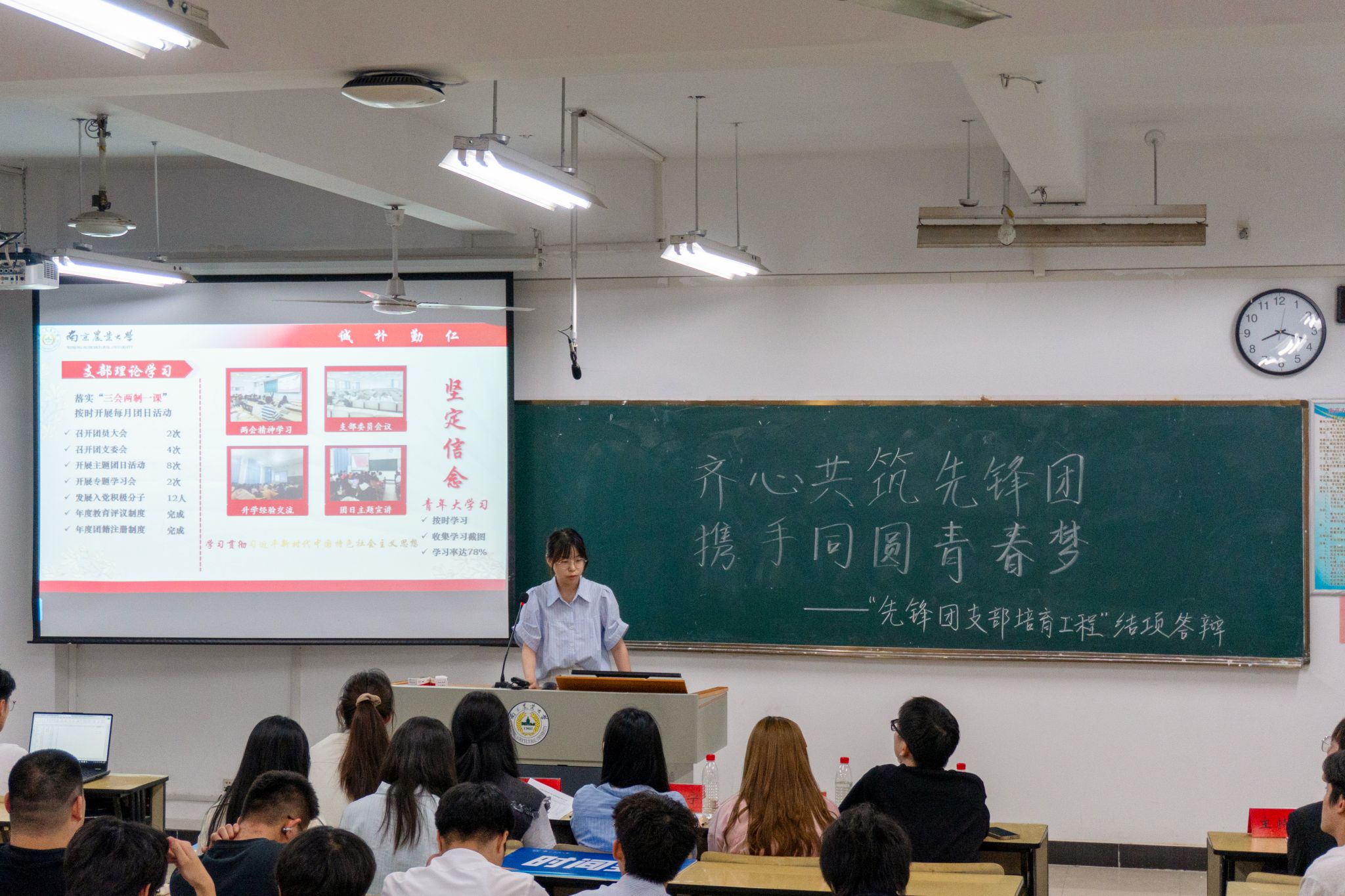 青年是时代的弄潮儿,团支部是凝聚青春力量的战斗堡垒。5月7日下午,人工智能学院第十三批“先锋团支部培育工程”结项答辩会在浦口校区汇贤楼B203报告厅举行。学院辅导员魏宇宁、封筱、于佳琪,第四届学生会执行主席阚婉宁,第五届学生团委副书记刘志亮及大一大二团支部代表等40余人出席活动,共同见证基层团组织建设的丰硕成果。