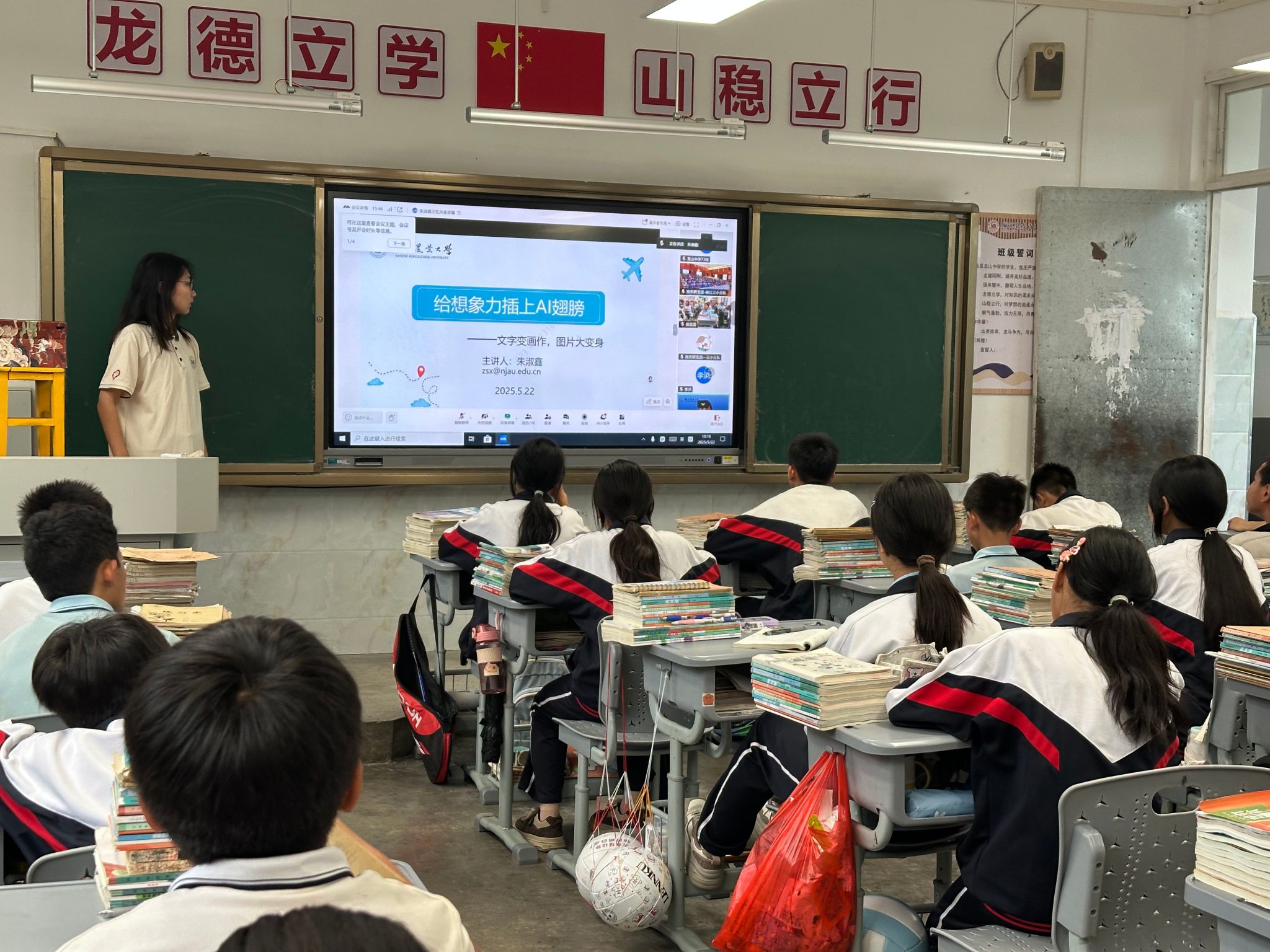 为助力麻江学子紧跟时代科技浪潮,了解前沿人工智能知识,拓宽数字认知视野,5月22日上午,我院携手南京农业大学研究生支教团贵州分团,在麻江县第三小学和龙山中学开展“智绘世界,共启新篇”AI科普小课堂,带领麻江学子开启图文创作的探索之旅。