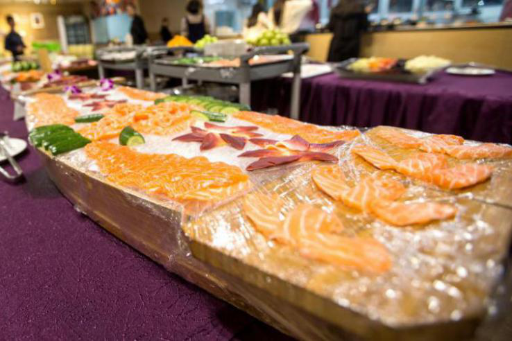 5.公司星级餐厅提供专业膳食搭配的自助三餐,每周及节日均有美食节。