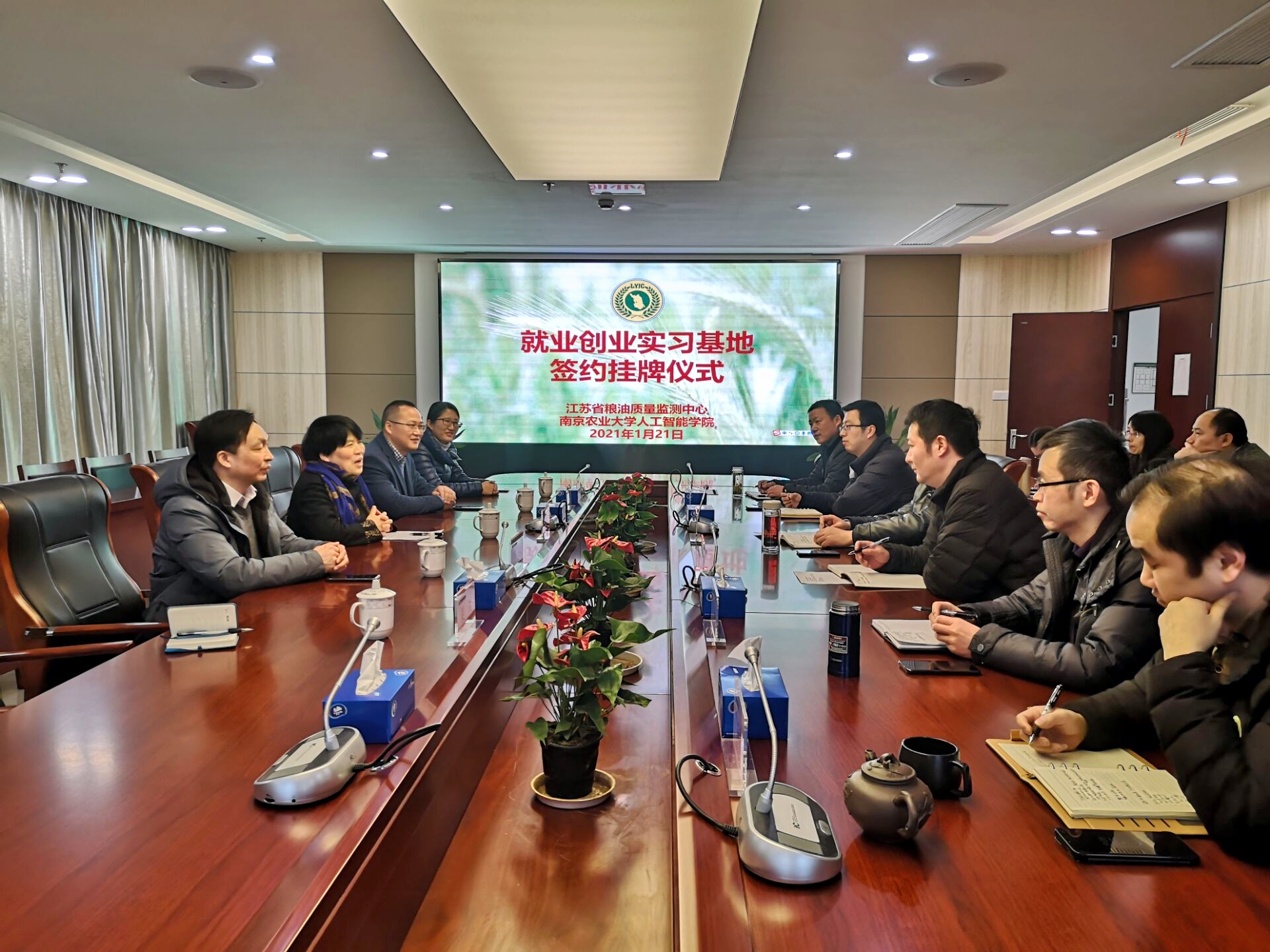 为提高人才培养质量和办学水平,加强校企协同育人机制建设,1月21日,人工智能学院走访江苏省粮油质量监测中心,与之签订就业创业实习共建协议,并举行南京农业大学“就业创业实习基地”揭牌仪式。