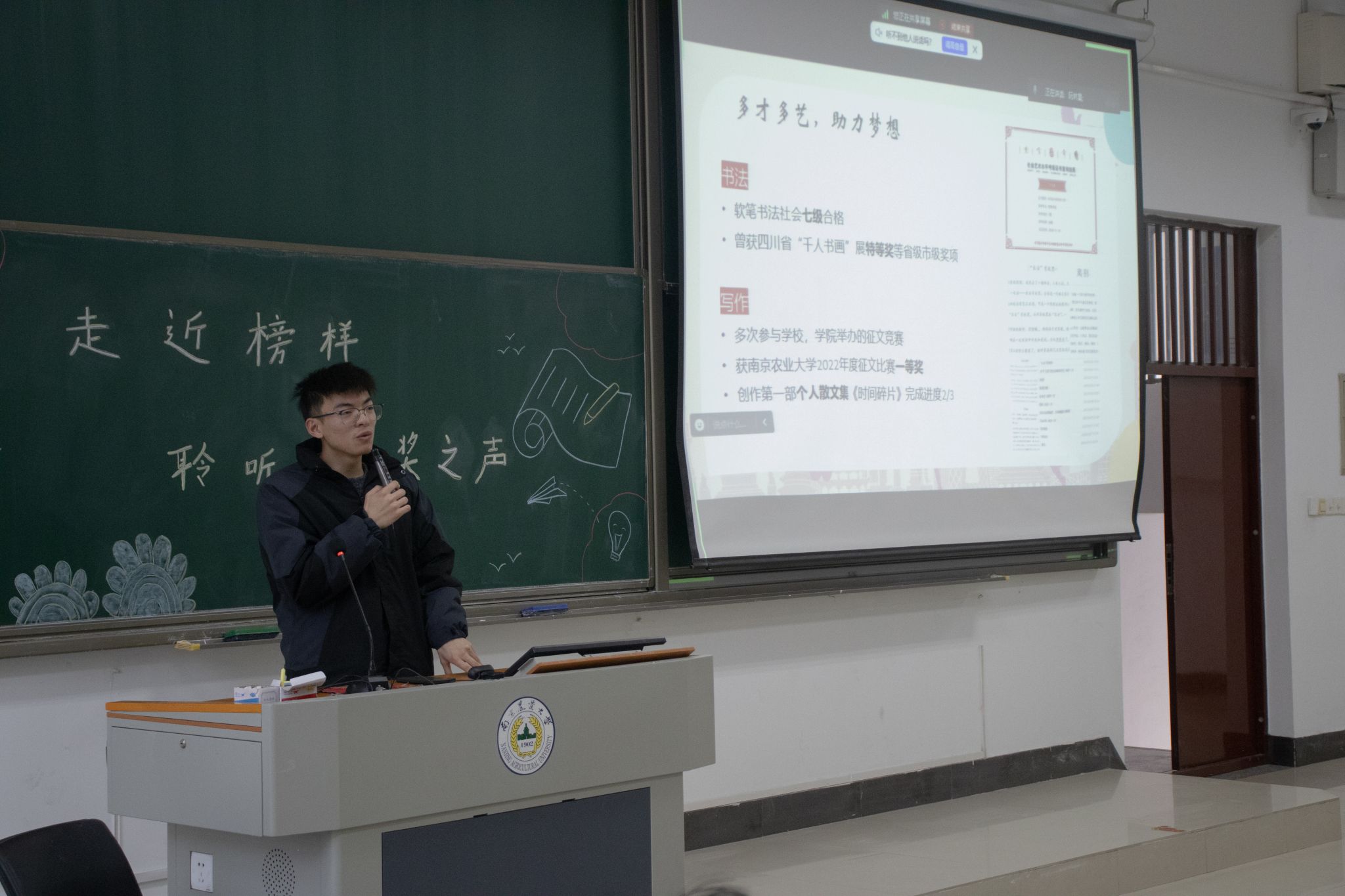 2022级电子信息科学与技术专业的石志强同学,以一场“越战越勇”的学习之旅作为分享的开篇,深刻阐述了制定合理规划对于学业生涯的指导意义。随后他展示了自己丰富多彩的课余生活,鼓励大家在紧张的学习之余,也不忘追寻个人兴趣,让大学生活更加多元且充满意义,从而在实现自我价值的道路上越走越远。