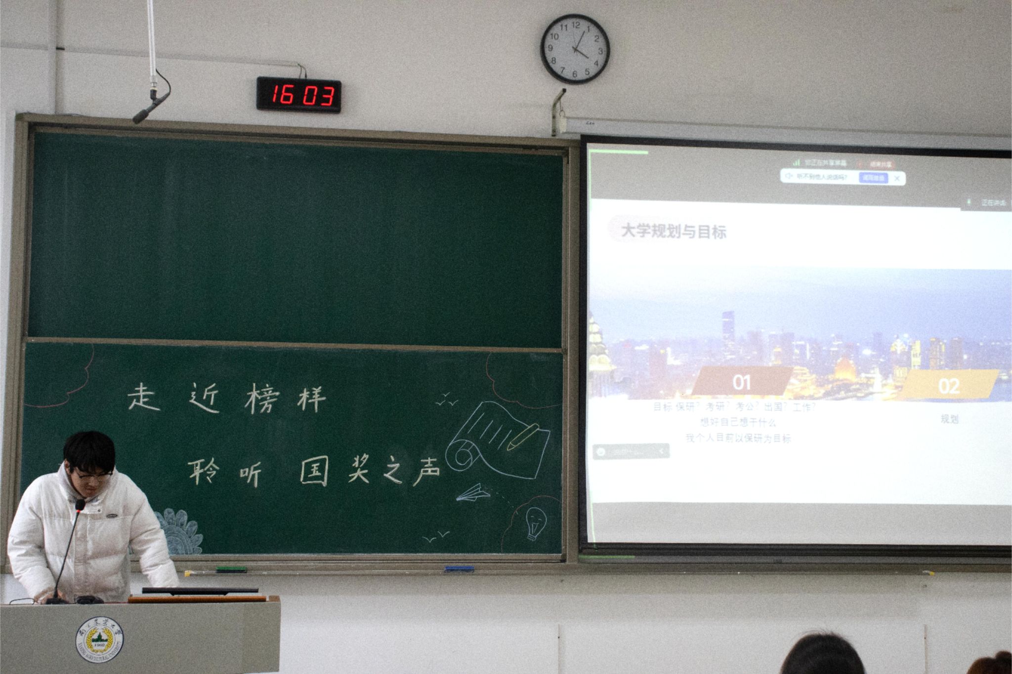 2023级自动化专业的程宇凡同学主要讲述了他的大学规划与目标设定,特别强调稳固基础的重要性,提醒同学们避免小错误。接着,他慷慨分享了参与各类竞赛的宝贵经验,鼓励在座的同学们勇于尝试,在实践中探索个人潜能与职业路径。