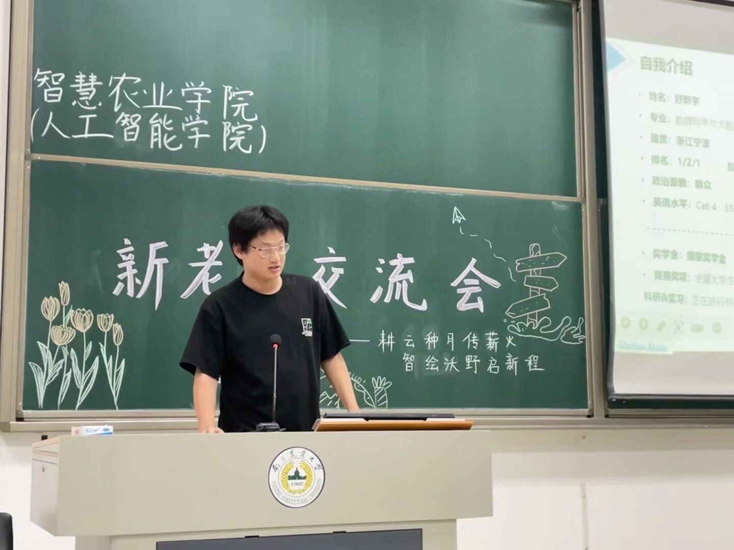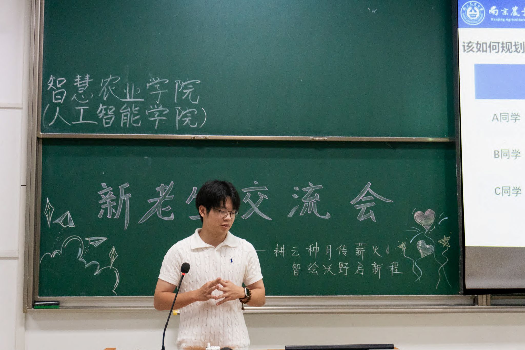 计算机类与智慧农业专业会场同样亮点纷呈。计科221班林小词学姐结合自身社团经历,解析学生组织选择策略,从“兴趣匹配度”“能力提升值”“时间投入比”三个方面指导新生平衡学业与社团活动。数据232班舒新宇学长围绕科研素养培育,系统讲解了“文献检索-课题设计-导师沟通”的科研入门三部曲,以实战经验鼓励学生投入科学研究。人工智能231班李想学长以“竞赛赋能成长”为主线,拆解了数学建模、机器人竞赛等赛事的备赛周期与团队协作技巧,现场展示的获奖作品案例激发了新生浓厚兴趣。智慧农业221班刘义轩学长则从行业发展趋势出发,对比分析了考研深造与就业创业的差异化准备路径,以“早规划,早行动,未来才更从容”的寄语引发全场共鸣。