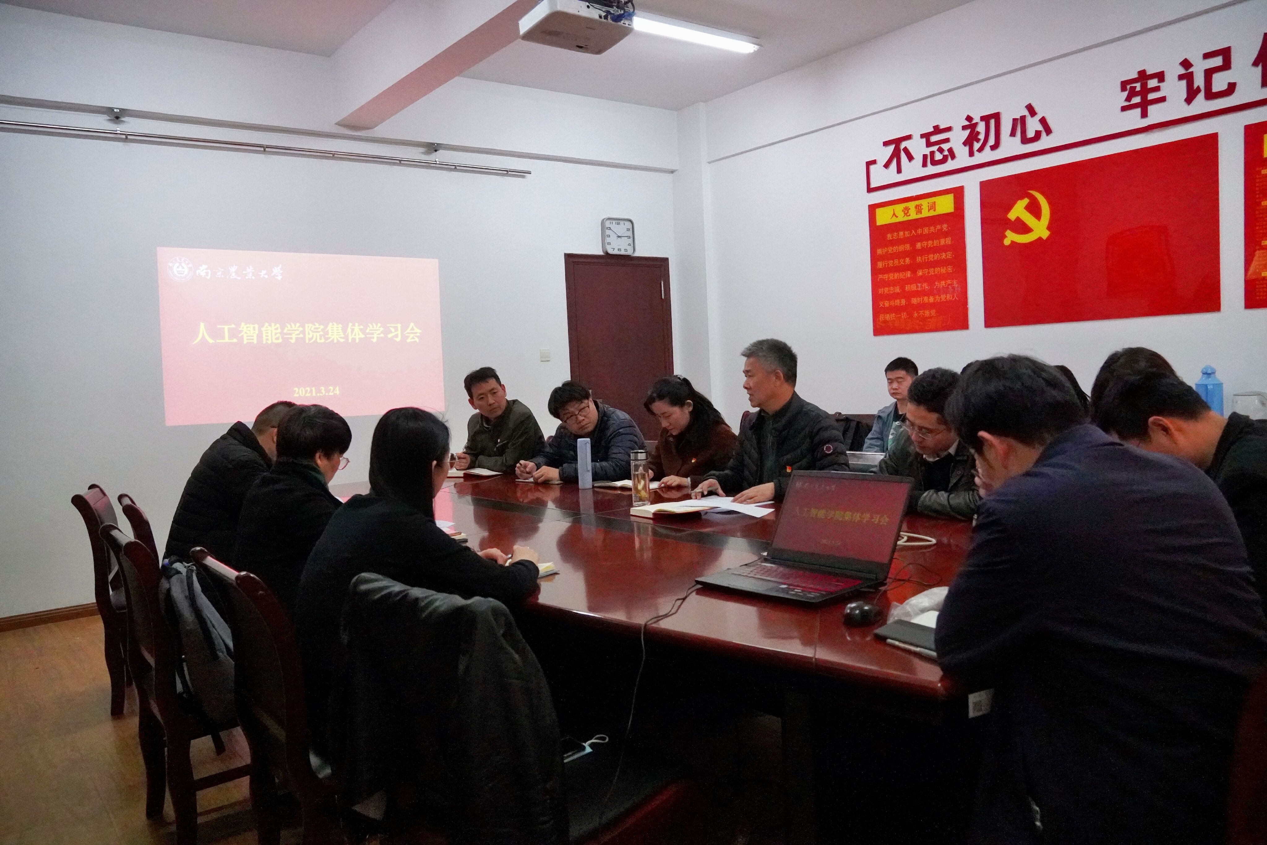 3月24日下午,人工智能学院党委在育贤楼B311召开集体学习会。院党委副书记(主持工作)沈明霞主持会议,副书记卢伟,党委委员刘杨、张和生、任守纲、林相泽、陆明洲,以及全体支部书记参加学习。