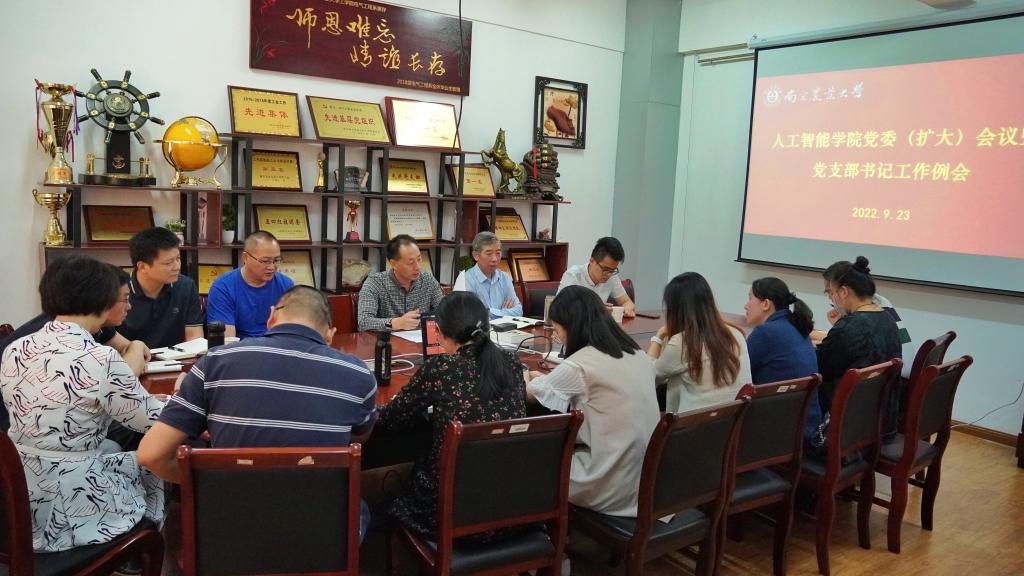 9月23日上午,人工智能学院党委在浦口校区育贤楼B311召开党委(扩大)会议暨党支部书记工作例会。会议由院党委书记田永超主持,党委委员,党支部书记、党务秘书、兼职组织员参会。院长徐焕良列席会议。