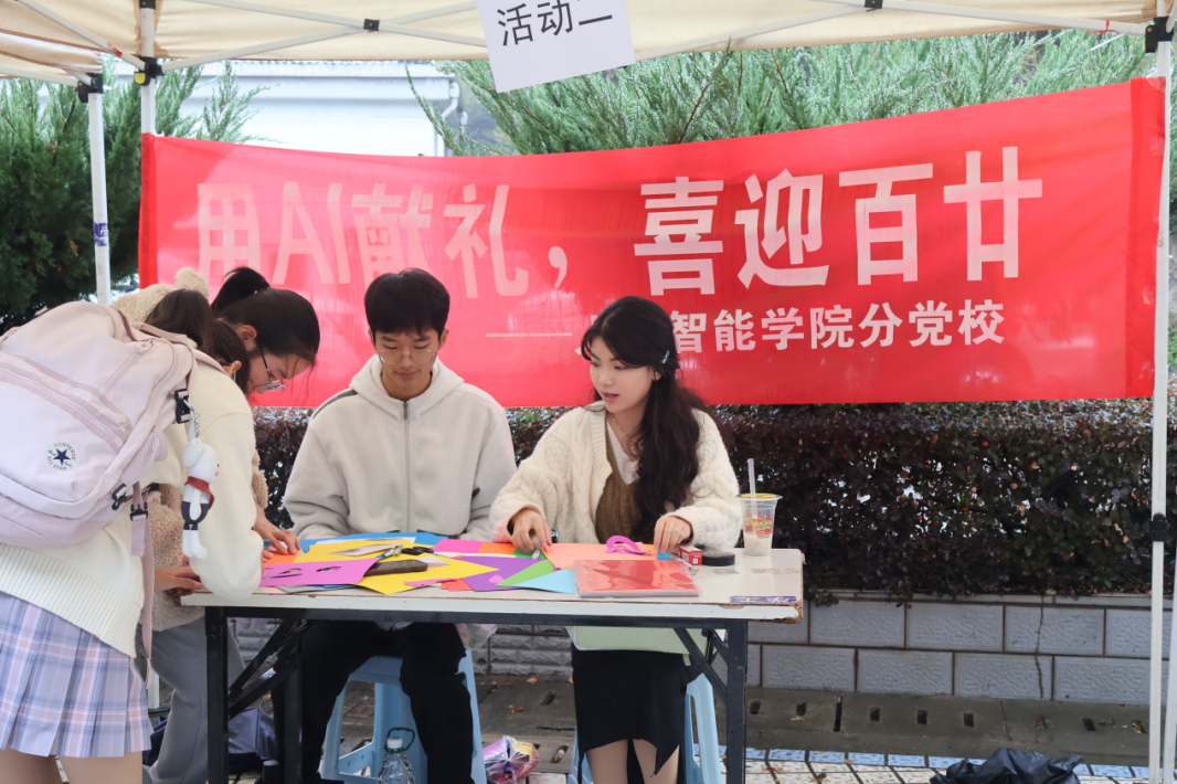 喜迎百廿校庆,弘扬南农精神,11月17日人工智能学院分党校在润泽园广场举办“用AI献礼,喜迎百廿”校庆主题系列活动。活动现场,“程序员”AI编码表达祝福、“剪刀手”指尖翻花尽显风采,“观众们”欣赏影音大饱耳福,“应答者”回答问题沉着自如。