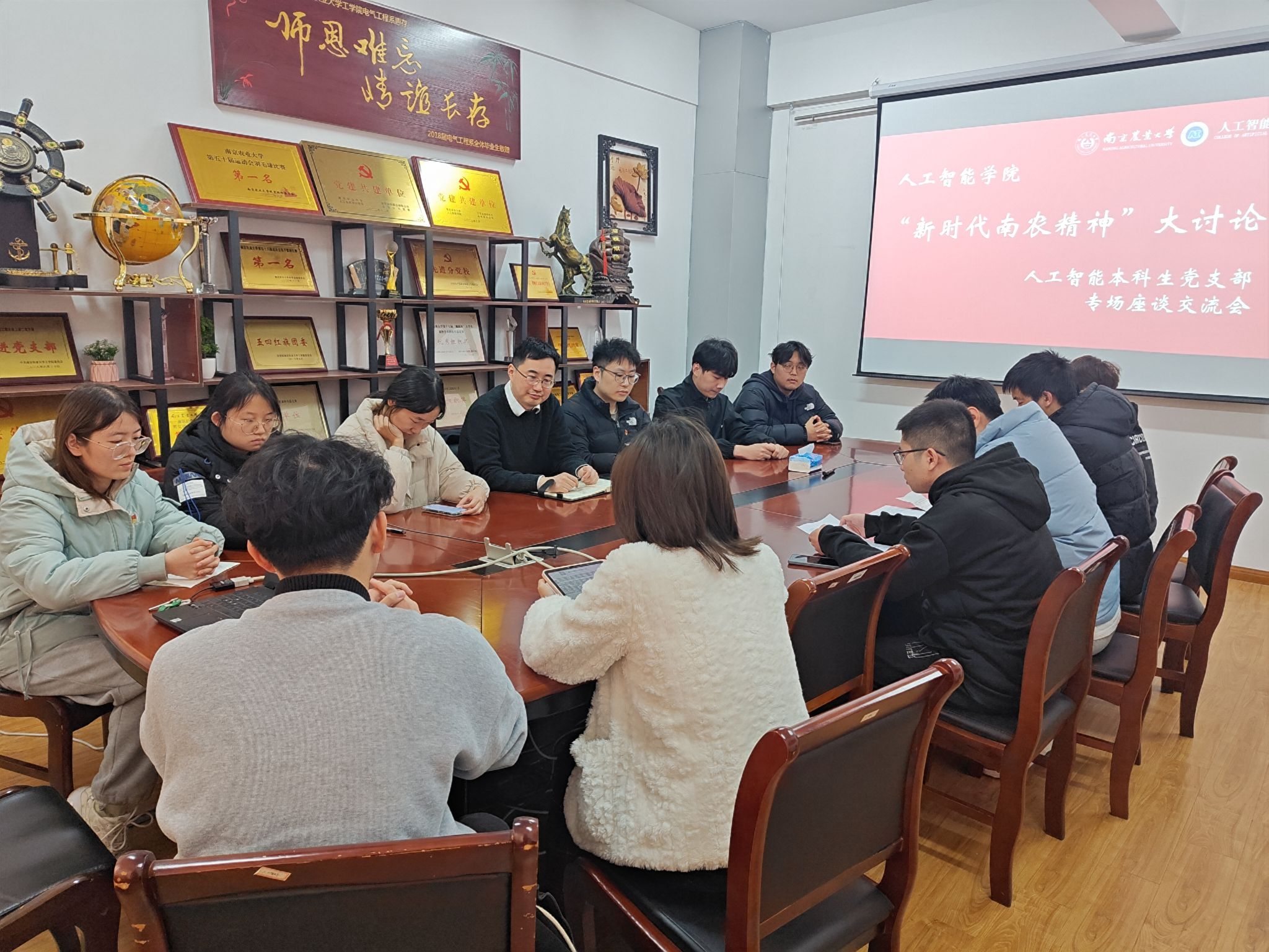 为贯彻落实学校、学院“新时代南农精神”大讨论的有关精神,汇集众智,凝聚思想合力,形成群策群力、共谋发展的浓厚氛围,3月20日,我院人工智能本科生党支部开展第一阶段研讨活动。学院党委副书记吕一雷,人工智能本科生党员、学生代表参加研讨。研讨由支部书记李洪主持。