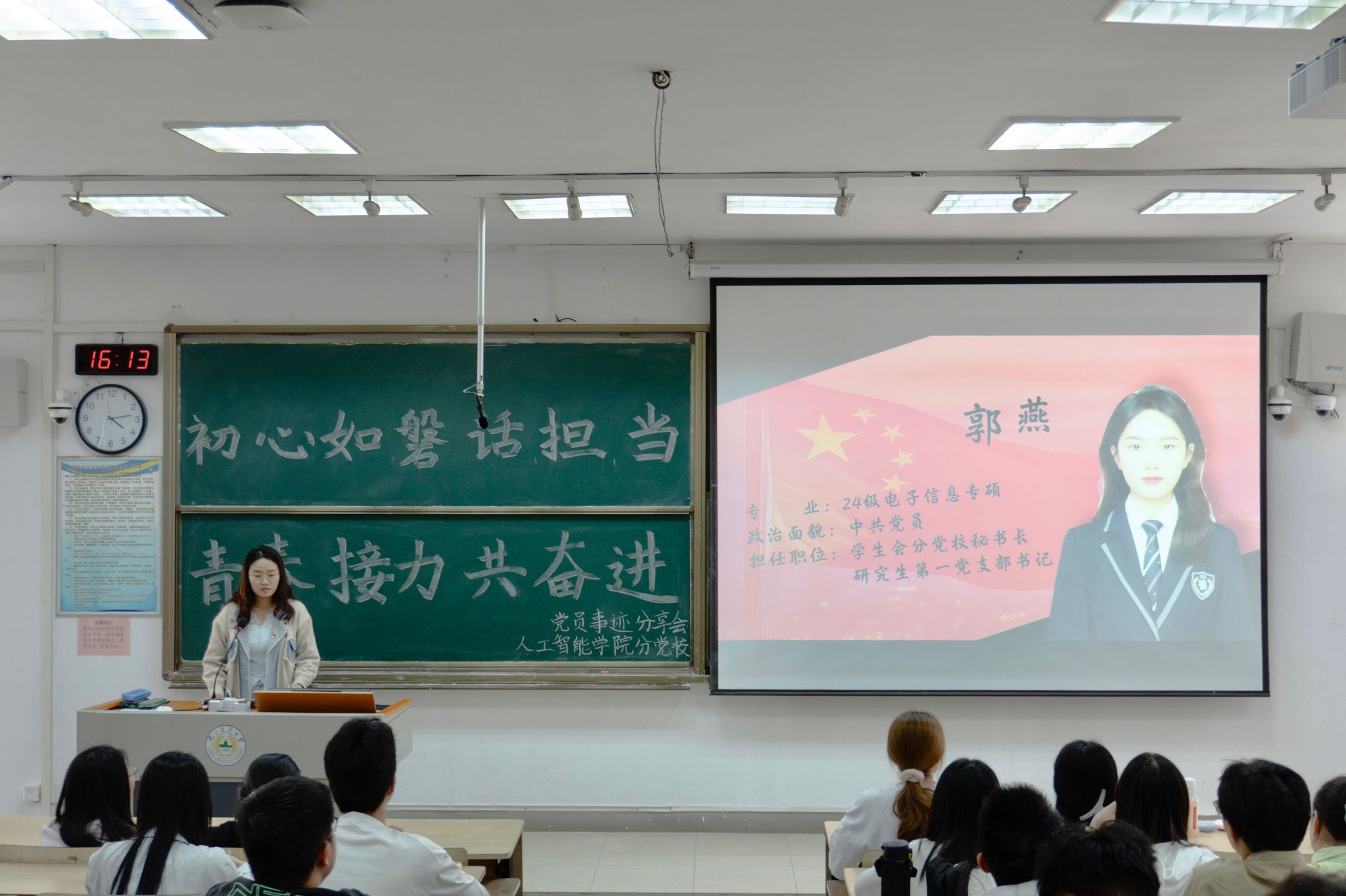 4月16日下午,人工智能学院“初心如磐话担当,青春接力共奋进”党员分享会在浦口校区汇贤楼C202顺利举办。本次活动由学院党委主办,学院分党校联合大数据本科生党支部、计科本科生党支部、电子信息本科生第一党支部、研究生第一党支部共同举办,本科生辅导员、学生党支部书记封筱、于佳琪老师,研究生第一党支部书记郭燕,党员代表王佳辰、李声宇及浦口校区团员青年参加活动。