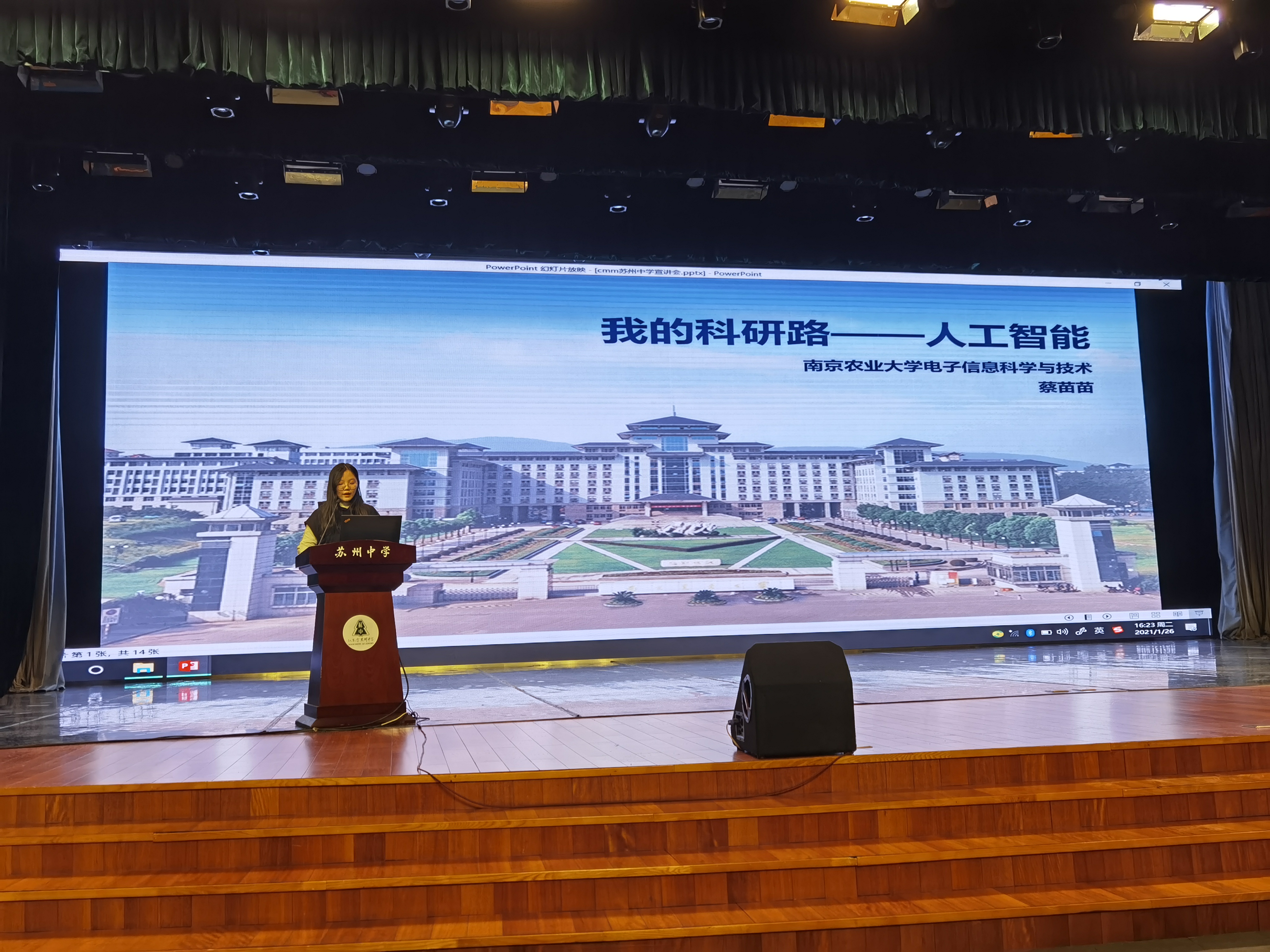 人工智能学院电子信息科学与技术专业2017级学生蔡苗苗,推免阶段收到清华大学、北京大学、复旦大学,中科大,浙江大学,东南大学等诸多名校offer,最终选择至中科大进一步深造。特邀蔡苗苗作为我校培养的优秀学生代表,为苏州中学同学讲述南农四年的生活、学习、科研等全方面的成长经历,激发同学们报考南农的热情。