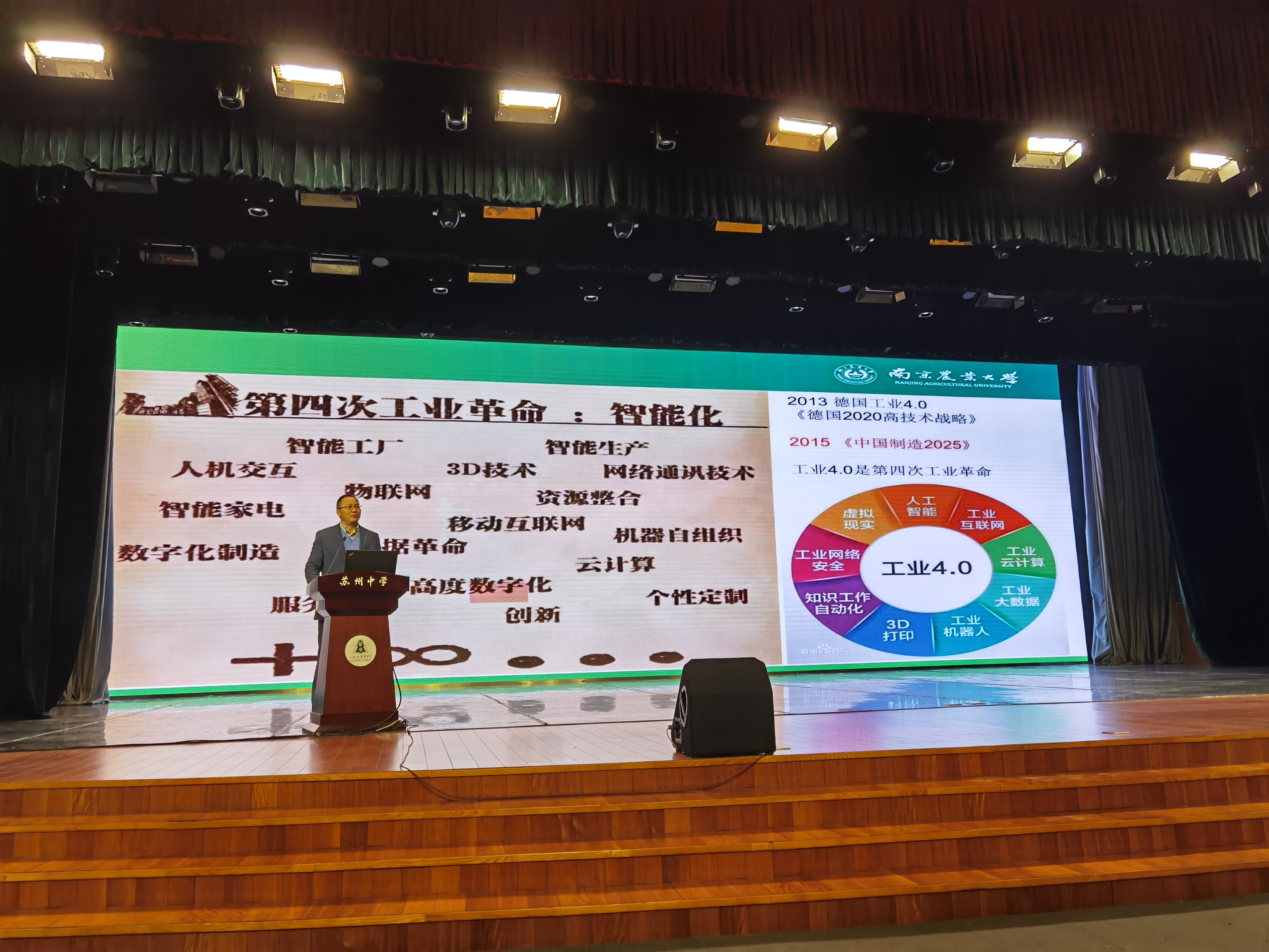 卢伟作《当农业遇到人工智能时代》报告,以大量鲜活的实例和视频介绍了工业、航天、农业机器人的实际应用,同时为师生们带来了近年来国际智能农业装备和农业机器人的最新研究进展,以及南京农业大学在相关智能化农业装备方面的研究成果。