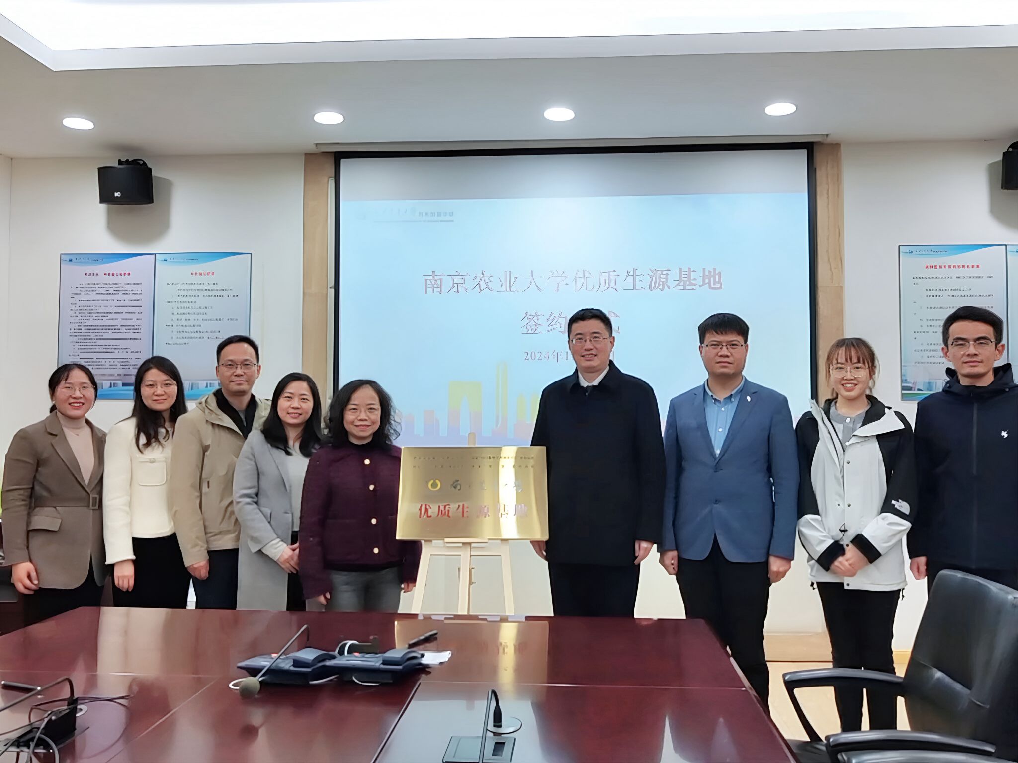为进一步推动优质生源基地建设,双方代表签署了《南京农业大学优质生源基地中学共建协议书》,并进行了授牌仪式。