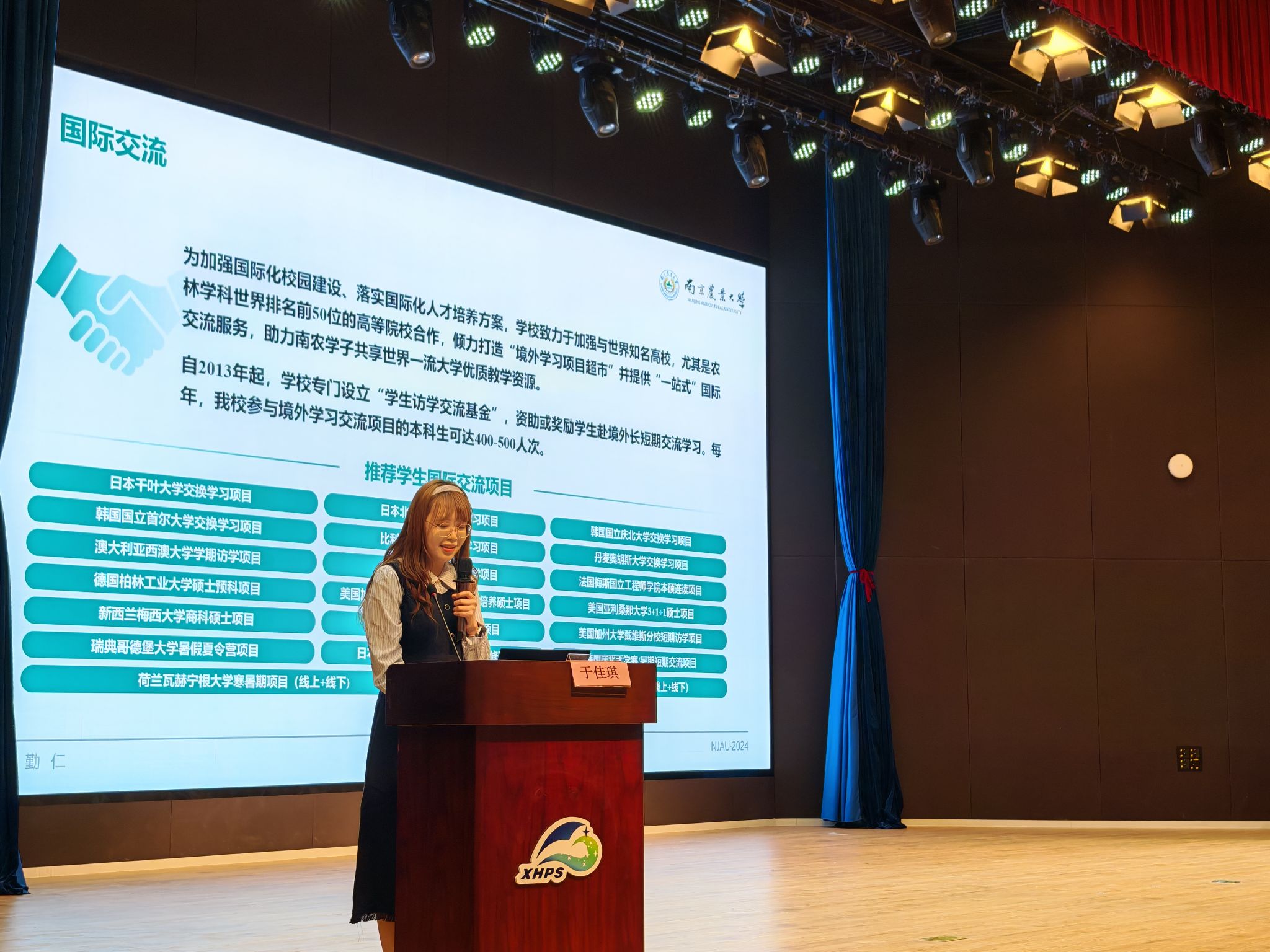 于佳琪围绕南京农业大学的办学历史、专业特点、师资力量、校园生活、就业前景等方面展开了详细介绍,全方位立体化的展现了我校的学科专业亮点与校园文化风情,显著加深了同学们对于南京农业大学的认知程度。并通过观看精彩的招生宣传视频让与会师生直观的感受到了学校的魅力。