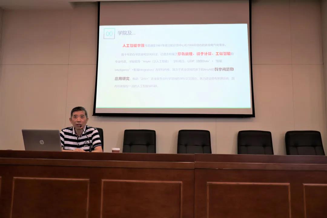 此外,徐焕良院长结合当今人工智能行业的发展现状,提出目前行业依旧处于以算法为中心的弱人工智能的初步阶段,其发展的潜力依旧是非常客观,鼓励研究生们致力于农业生产的计算与智能,农业物联网和农业电子与商务这三大方面来进行深度的实践与研究。结合时下最为实用和流行的新兴技术:物联网、大数据、区块链以及AI,将其与赋能农业相结合,诞生出具有特色的农业物联网、农业大数据、农业区块链以及农业人工智能。