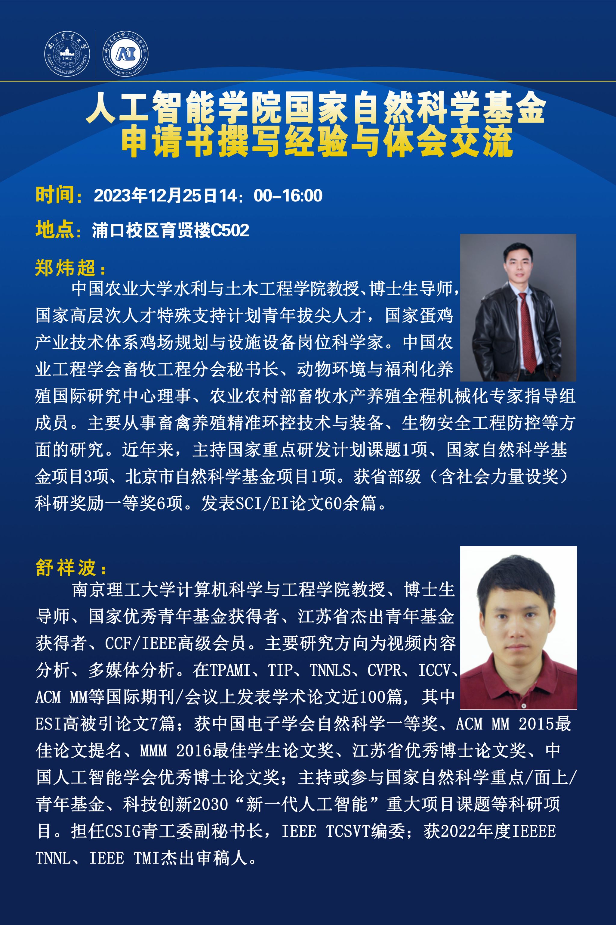 人工智能学院国家自然科学基金申请书撰写经验与体会交流