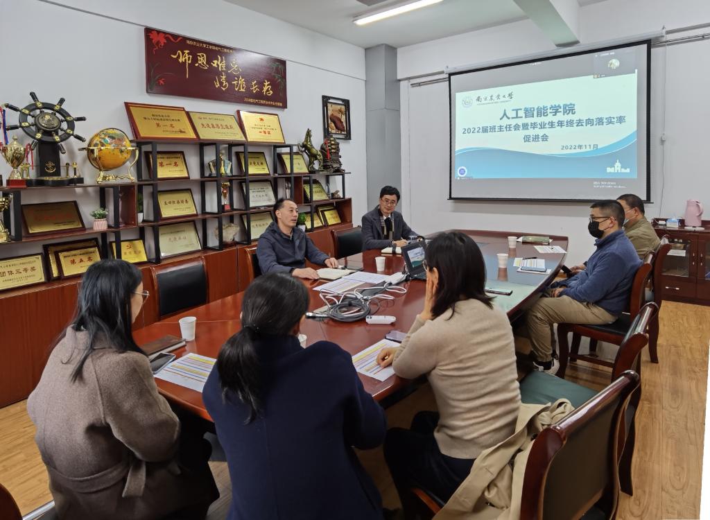 11月24日下午,人工智能学院于浦口校区育贤楼B311会议室,召开2022届班主任会暨毕业生去向落实促进会。人工智能学院党委书记田永超、党委副书记吕一雷、2022届本科生班主任、全体辅导员双线参与会议,会议由吕一雷主持。