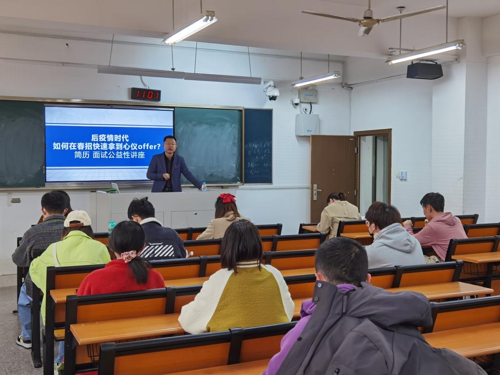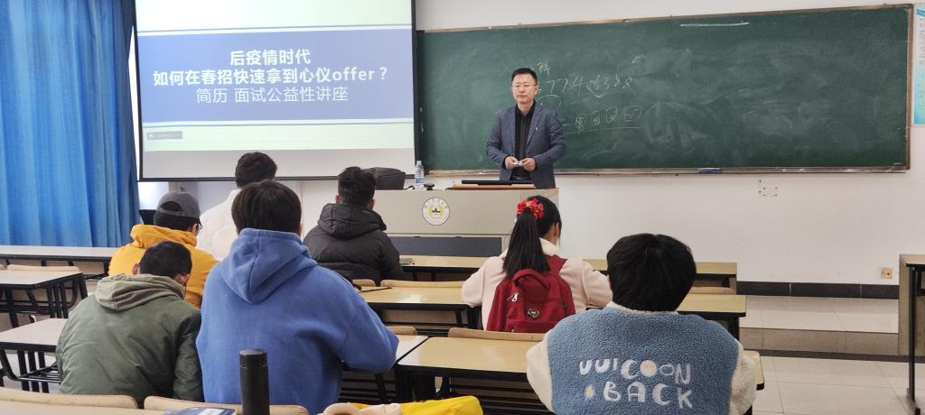 3月2日,人工智能学院“春招”简历制作、面试能力提升指导讲座,在卫岗校区教四楼B203(上午)、浦口校区汇贤楼B204(下午)双边顺利举办。本次讲座特邀艾瑞集团汇智系统集成有限公司项目负责人陈韩老师主讲,旨在分享简历完善、面试能力提升的经验,解决同学们在“春招”中的各种问题。