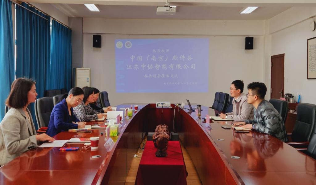 3月15日上午,中国(南京)软件谷企业服务部副部长吴霞、江苏中协智能有限公司总经理刘承红一行来我院就软件谷-高校就业实习实训基地建设等话题进行洽谈。人工智能学院党委副书记吕一雷、学工办副主任湛斌参加座谈交流。