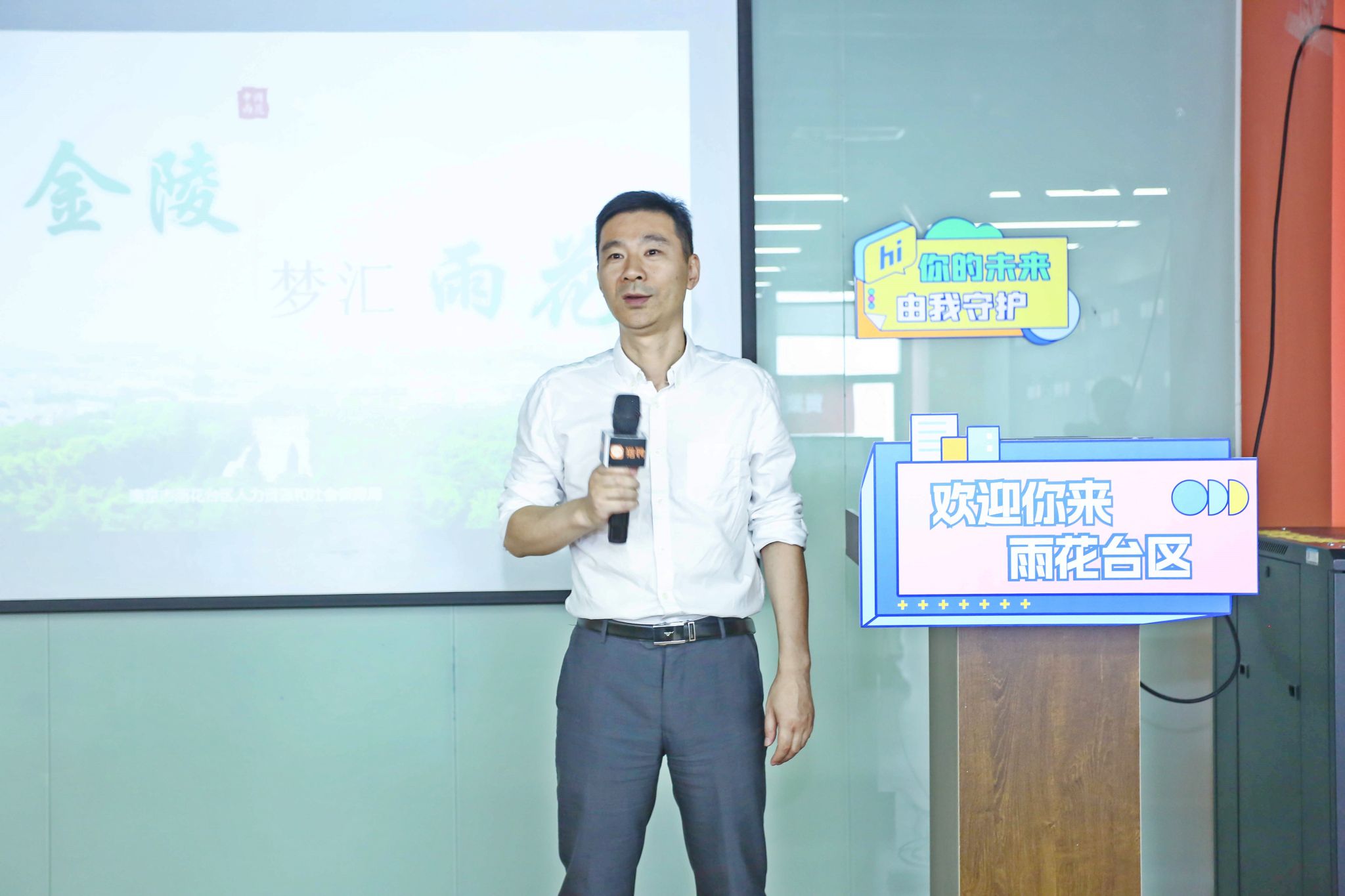 最后,雨花台区人力资源和社会保障局召开了雨花台区推介座谈会。会上,区人社局副局长沈宇表示,这次活动是一次让在宁高校广大师生深入了解雨花台区建设现状与发展前景的宝贵机会。他着重提及,雨花台区产业集聚、特色鲜明、区位优越、政策多元,是一个宜居宜业的好地方,欢迎在宁高校广大优秀学生毕业后优先选择来雨花台区发展与成长。