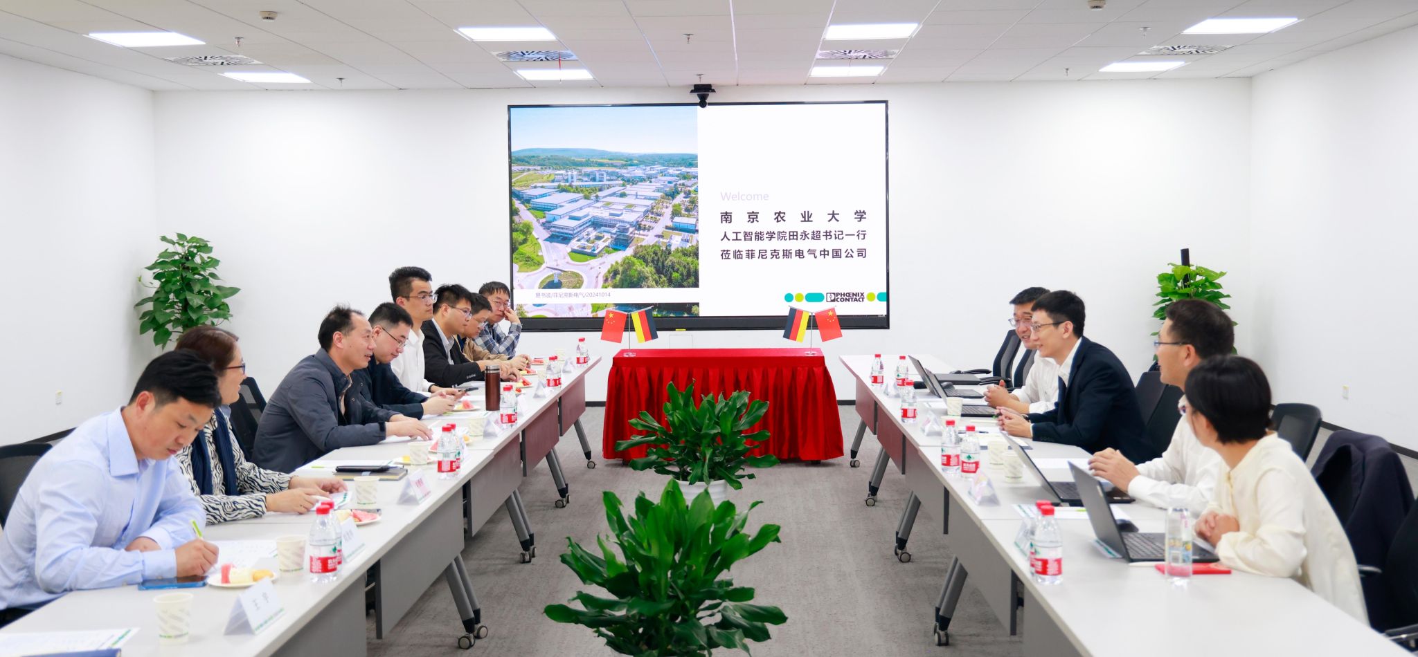 李阳代表菲尼克斯电气首先对学校各位领导的来访表示热烈欢迎。随后介绍了公司的发展历程、理念和战略目标等;同时强调,菲尼克斯电气是全球电气化、网络化和自动化技术与市场的领导者,隐形冠军的代表,致力于成为赋能全电气社会的数字工业企业;期待未来与南京农业大学人工智能学院能够继续在相关领域中不断拓展深层次的校企合作模式。